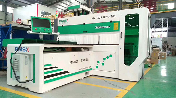 數(shù)控六面鉆屬于通過式結構,更容易與自動貼標生產線,封邊機回轉平臺對接組成自動化生產連線。目前品脈的