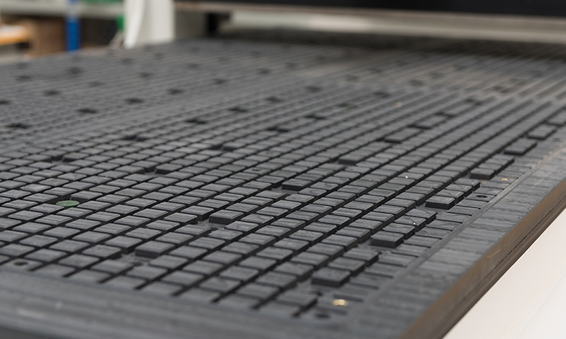 數(shù)控開料機臺面結(jié)構(gòu)。并且加工小板比較小,或者工件透氣性很好,可以選擇給機器加配壓輪,以達到更好的加工效果。