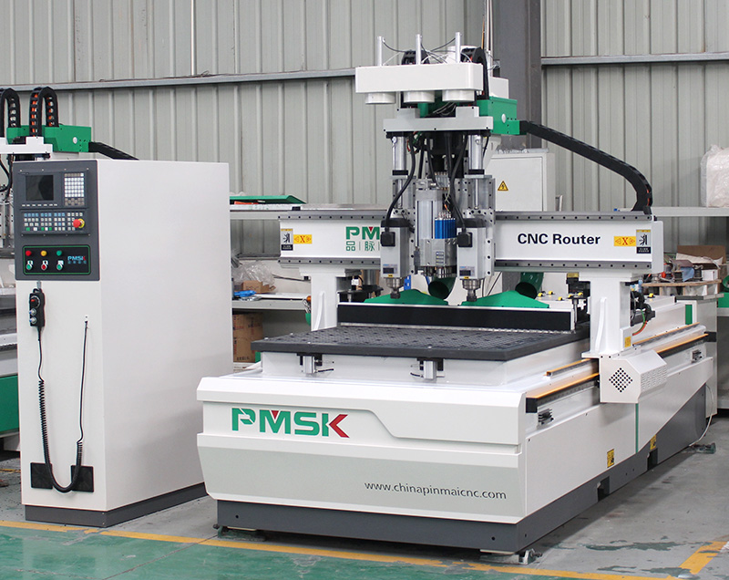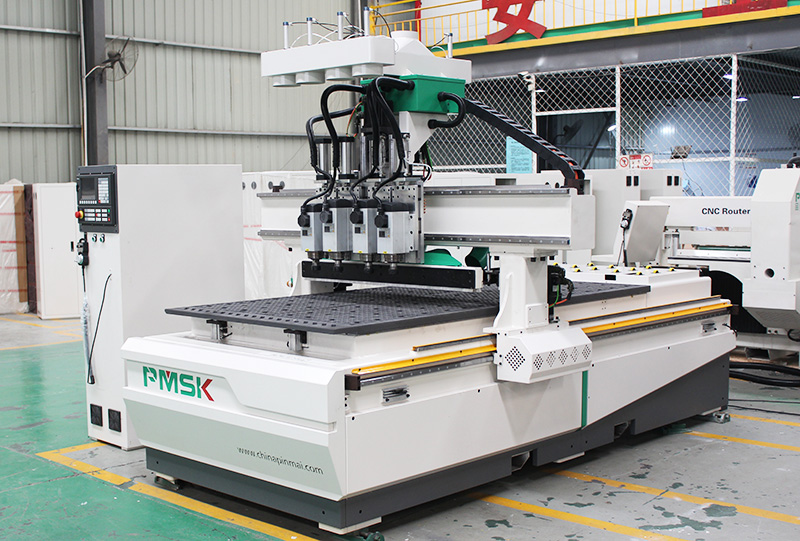 數(shù)控開料機的單頭打孔的主軸而言,速度能快一倍多,而且排鉆組可以根據(jù)不同的孔位大小自動換打孔刀具進行加工。在價格方面此款機型肯定是比四工序開料機要高些,也是柜體加工廠選擇比較多的一款機型。