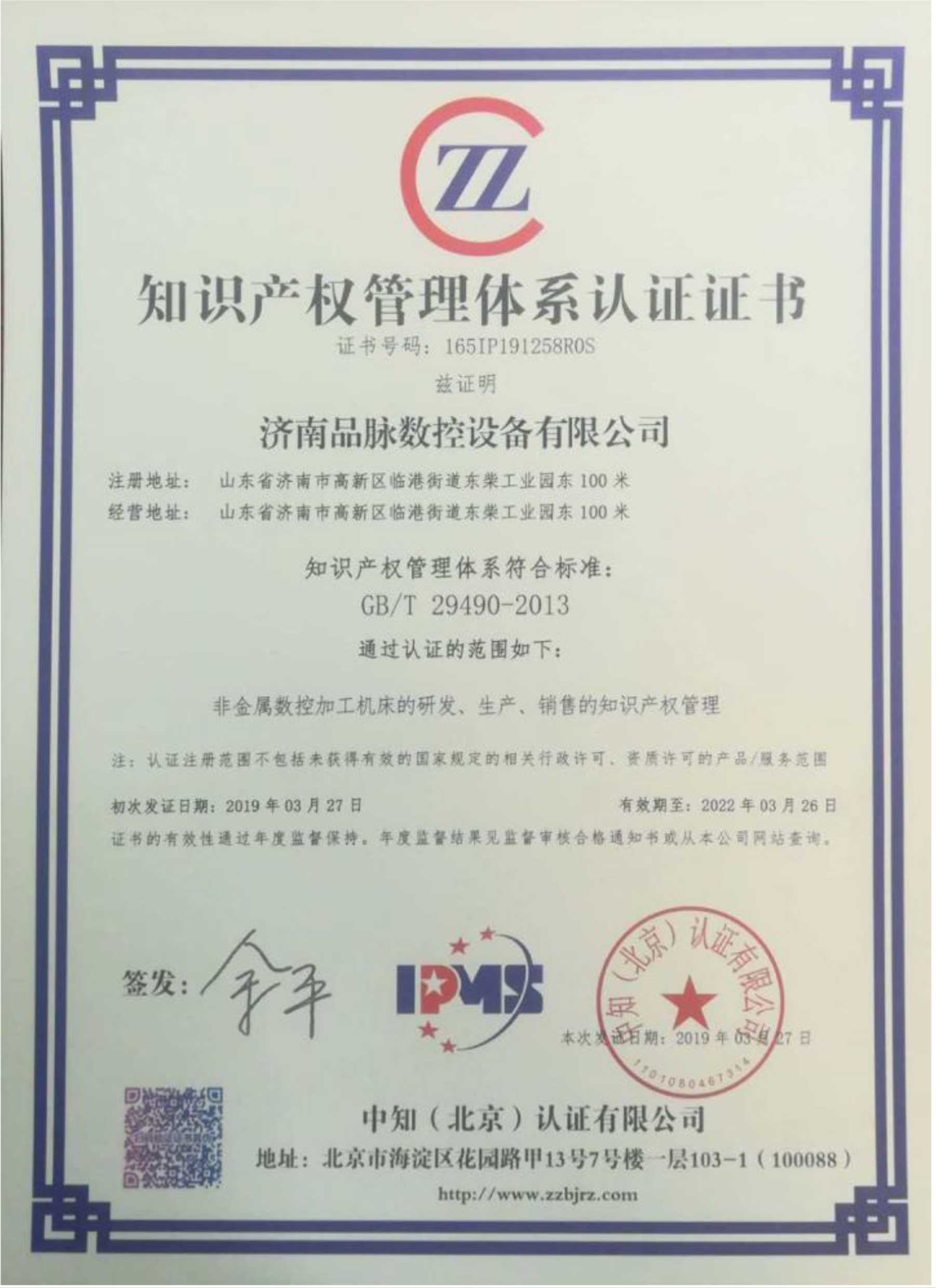 品脈數(shù)控榮獲知識產(chǎn)權(quán)管理體系認(rèn)證證書