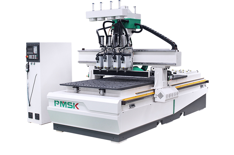 1.機(jī)器結(jié)構(gòu)由四個(gè)主軸組成,氣動(dòng)切換。安裝四個(gè)不同的刀具,實(shí)現(xiàn)板式家具開料、打孔、開槽,櫥柜門板銑型等工藝。