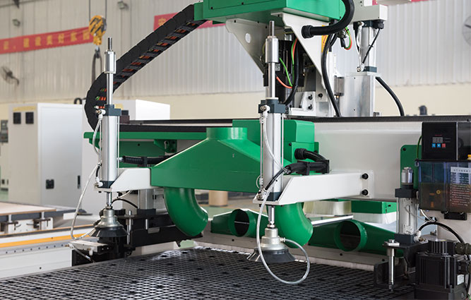 機器配備一套意大利進口(5+4)9V排鉆包,專業(yè)解決柜體生產(chǎn)時的孔位問題,同時機器擁有兩套6KW主軸分別對板材進行拉槽和開料切割。目前此機型主要搭配紅外側(cè)孔機進行板式家具生產(chǎn),每天八小時的加工產(chǎn)量可以達到60多張板左右。機器加了自動上下料功能能夠減輕人工勞動的負(fù)荷量,提高機器的加工效率,自動化程度高。